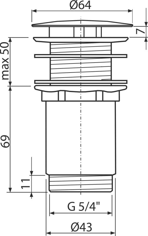 Spust umywalki 5/4" metalowy, duży korek niezamykający, do umywalek bez przelewu, biały-połysk