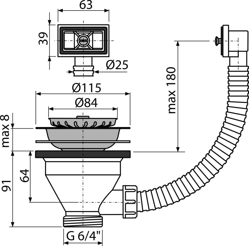 - Gwint do połączenia z półsyfonem 6/4"