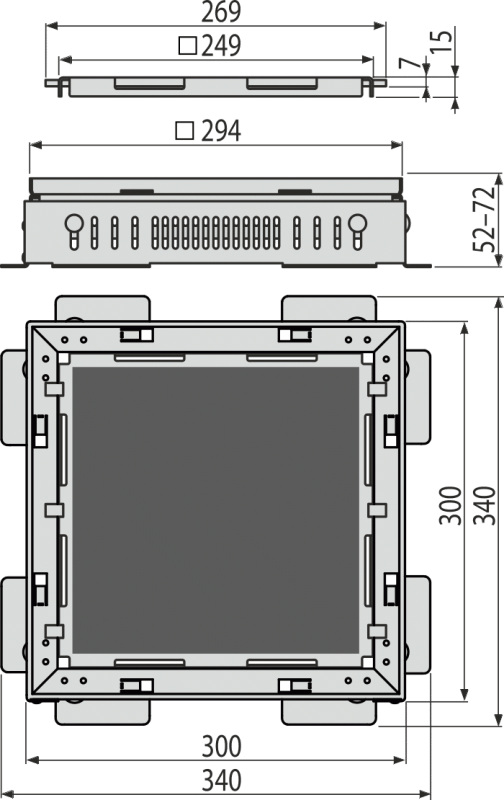 Gardziel nastawna kratki + Ruszt do wypełnienia płytką 300×300, stal nierdzewna