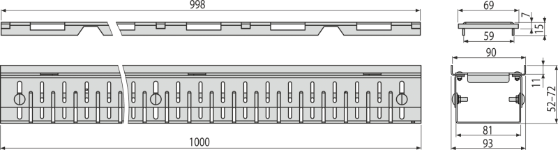 Odwodnienie drenażowe 100 mm z regulacją + Ruszt do wypełnienia płytką, stal nierdzewna