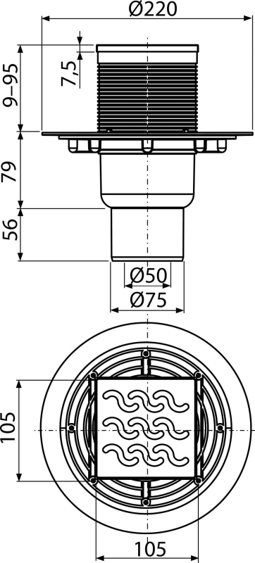 | APV0600 | Drain throat, design grid 105×105 mm steel |