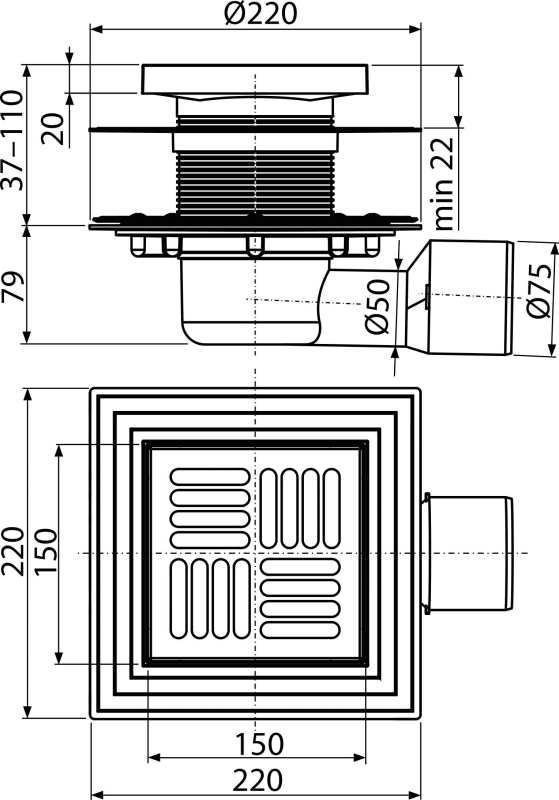 | APV0400 | Drain throat, grid 150×150 mm steel |