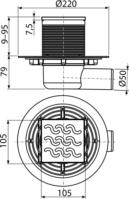 | APV0600 | Drain throat, design grid 105×105 mm steel |