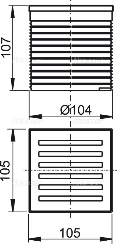 | APV203 | Kratka ściekowa 105×105/50/75 mm odpływ pionowy, kratka nierdzewna, syfon mokry |