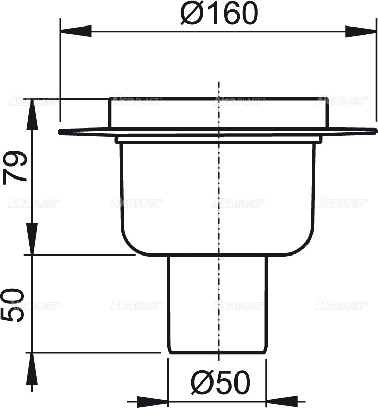 | APV201 | Kratka ściekowa 105×105/50/75 mm odpływ pionowy, kratka nierdzewna, syfon mokry |