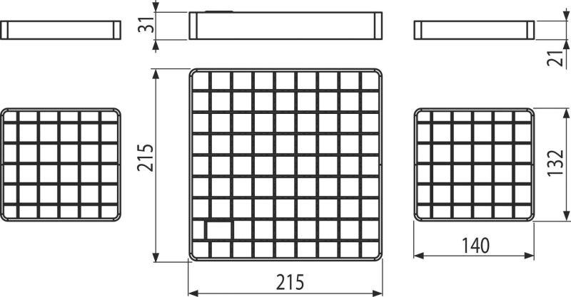 - Wymiary rusztu 215 × 215 mm, 132 × 140 mm