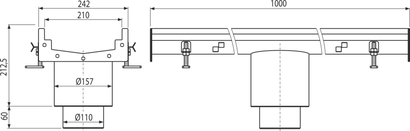Przemysłowy odpływ punktowy z wpustem skrzynkowym 250×250-210, stal nierdzewna AISI 304