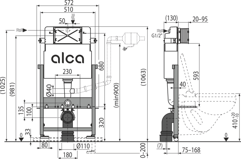 - Do zamontowania wiszącej miski WC o rozstawie śrub mocujących 180 mm lub 230 mm