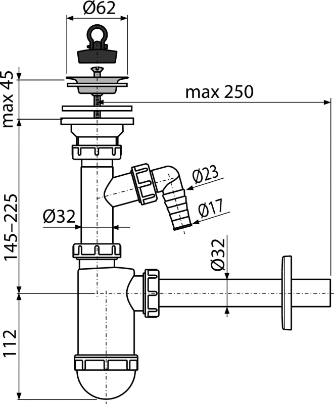 - Przyłącze do rur kanalizacyjnych Ø32 mm