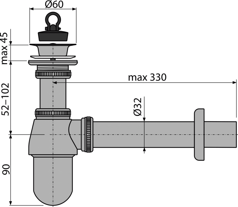 Syfon umywalkowy DN32 ze spustem 5/4", metal