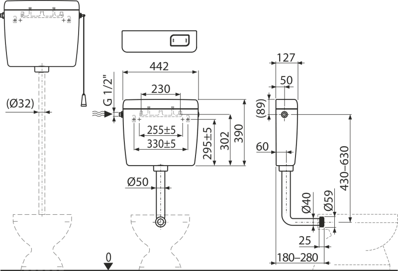 | Przy wysokim zainstalowaniu zbiornika funkcja STOP jest niedostępna | |