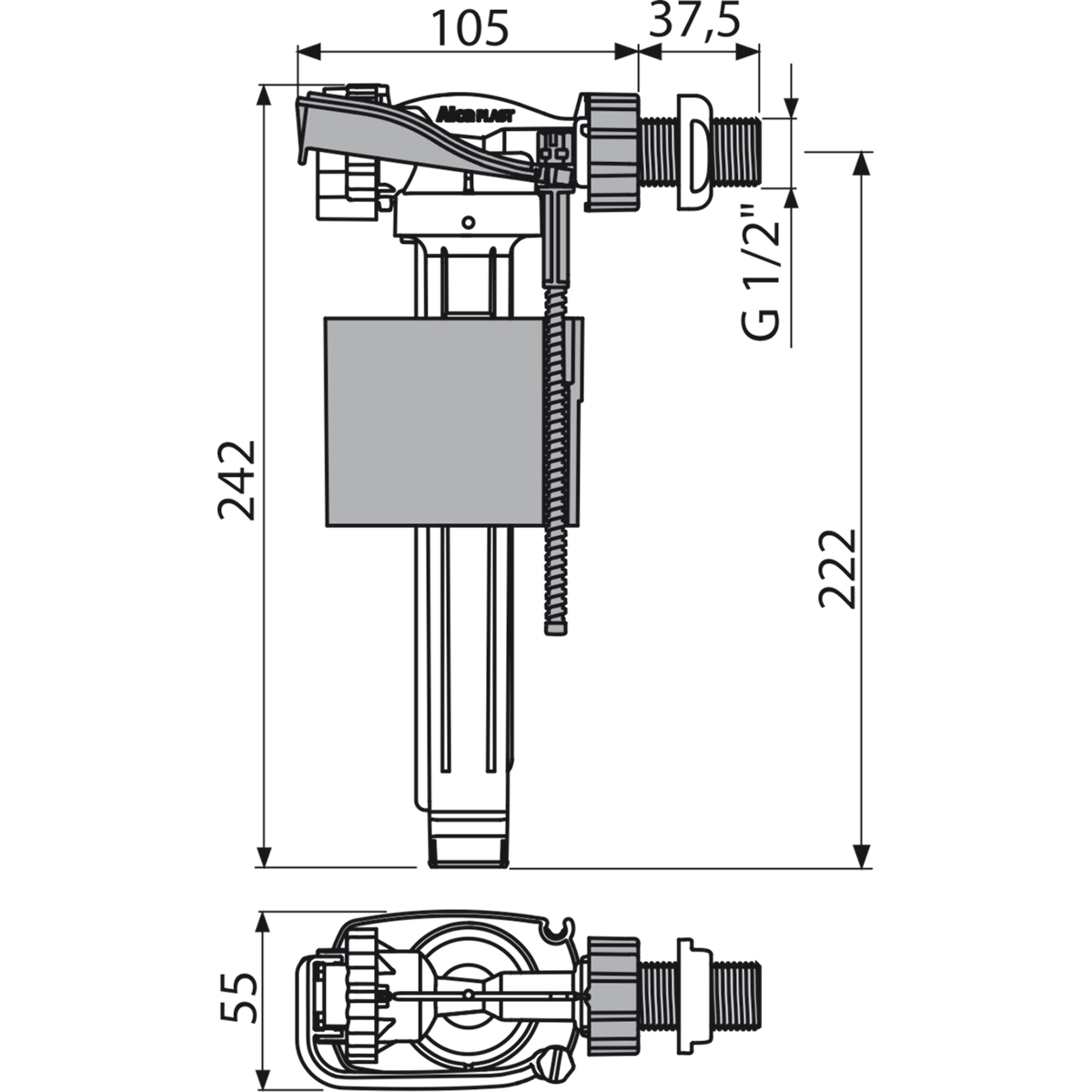Zawór napełniający boczno zasilany z metalową końcówką (zbiorniki ceramiczne)