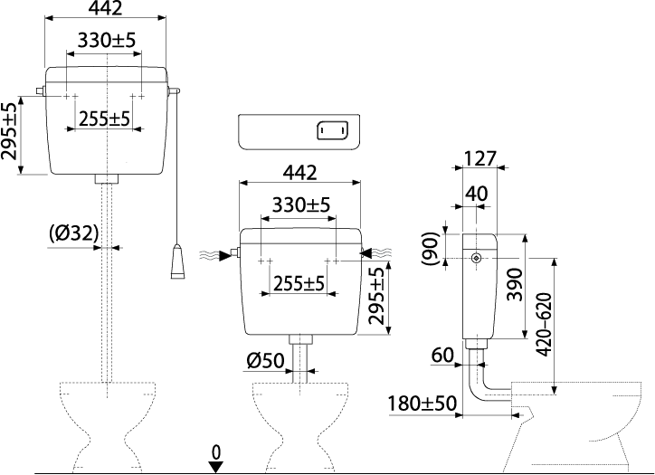 | Przy wysokim zainstalowaniu zbiornika funkcja STOP jest niedostępna | |